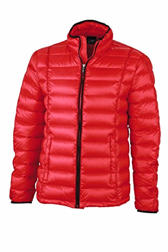 The James & Nicholson Men's JN1082 Quilted Down Puffa Jacket red/black 3XL Features : Soft wind and water-repellent fabric,Contrasting edging on zip collar and sleeves,2 side pockets and 1 zipped inner pocket,Full-length storm flap.
